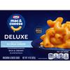 Help yourself to a bowl of comfort. Kids and adults love the rich taste of Kraft Deluxe Mac & Cheese Macaroni and Cheese Dinner with Sauce Made with 2% Milk Cheese. Our 14-ounce mac and cheese box includes macaroni pasta and cheese sauce mix to make tasty mac and cheese kids love. Our warm, cheesy macaroni goodness fills your belly and feeds your soul. With no artificial dyes or flavors, Kraft Macaroni and Cheese is always a great choice for family dinners. Looking for quick meals, sides or kids meals? Simply boil 2 quarts of water, stir in macaroni and cook 11-12 minutes. Drain the macaroni and return to the pan. Then squeeze the cheese sauce over the hot macaroni and stir until blended. Stir up new ways to enjoy Kraft Mac n Cheese by adding protein or seasonings to make it your own. Try crispy bacon, shredded rotisserie chicken, steamed broccoli, hot sauce, and more! A wholesome tradition, Kraft Mac & Cheese has been bringing generations together since 1937. Kraft Mac & Cheese inspires the positive power of comfort, so keep your pantry stocked with our dinner sides and enjoy cheesy goodness anytime.