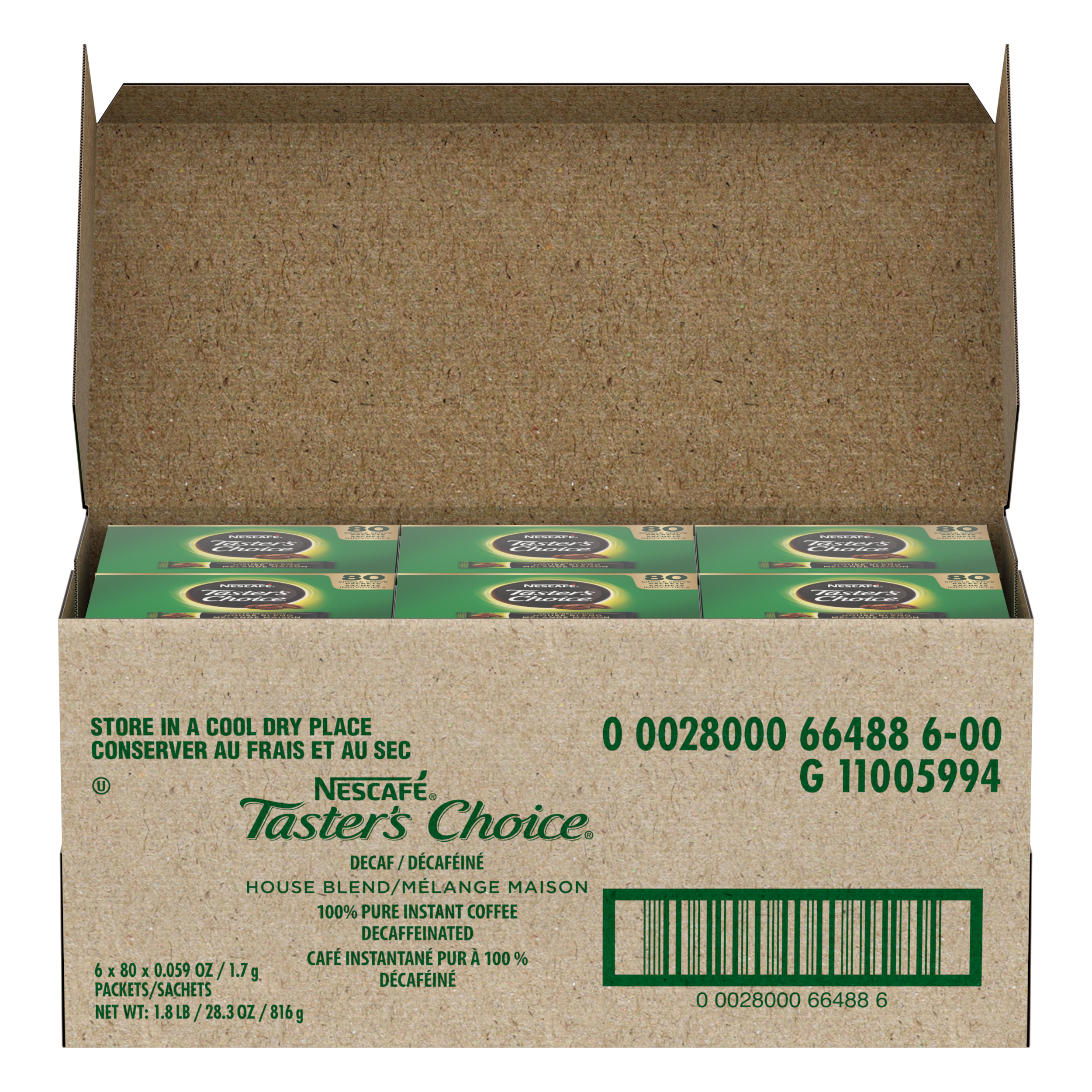 NESCAFE Taster's Choice House Blend Decaf Coffee Stick Packs create a smooth and mild roasted instant coffee. With NESCAFE Taster’s Choice, you can easily prepare fresh-tasting, consistent coffee without the hassle of roasting and grinding. Our Master Coffee Crafters roast each bean to a precise color, then carefully monitor the brewing temperature to bring you exceptional flavor. Each freshly brewed batch of NESCAFE Taster’s Choice is flash frozen to lock in the optimal coffee taste until you’re ready to unlock it. NESCAFE Taster's Choice House Blend Decaf Coffee Stick Packs help minimize product waste with their long-lasting, fresh taste versus roast and ground coffee. NESCAFE Taster’s Choice is part of the NESCAFE Plan, which helps protect the future of coffee for those who enjoy drinking it, growing it – and selling it. We put careful attention into every step to ensure we give you a delicious cup of coffee every time. Come, have a coffee with us! It all starts with a NESCAFE.