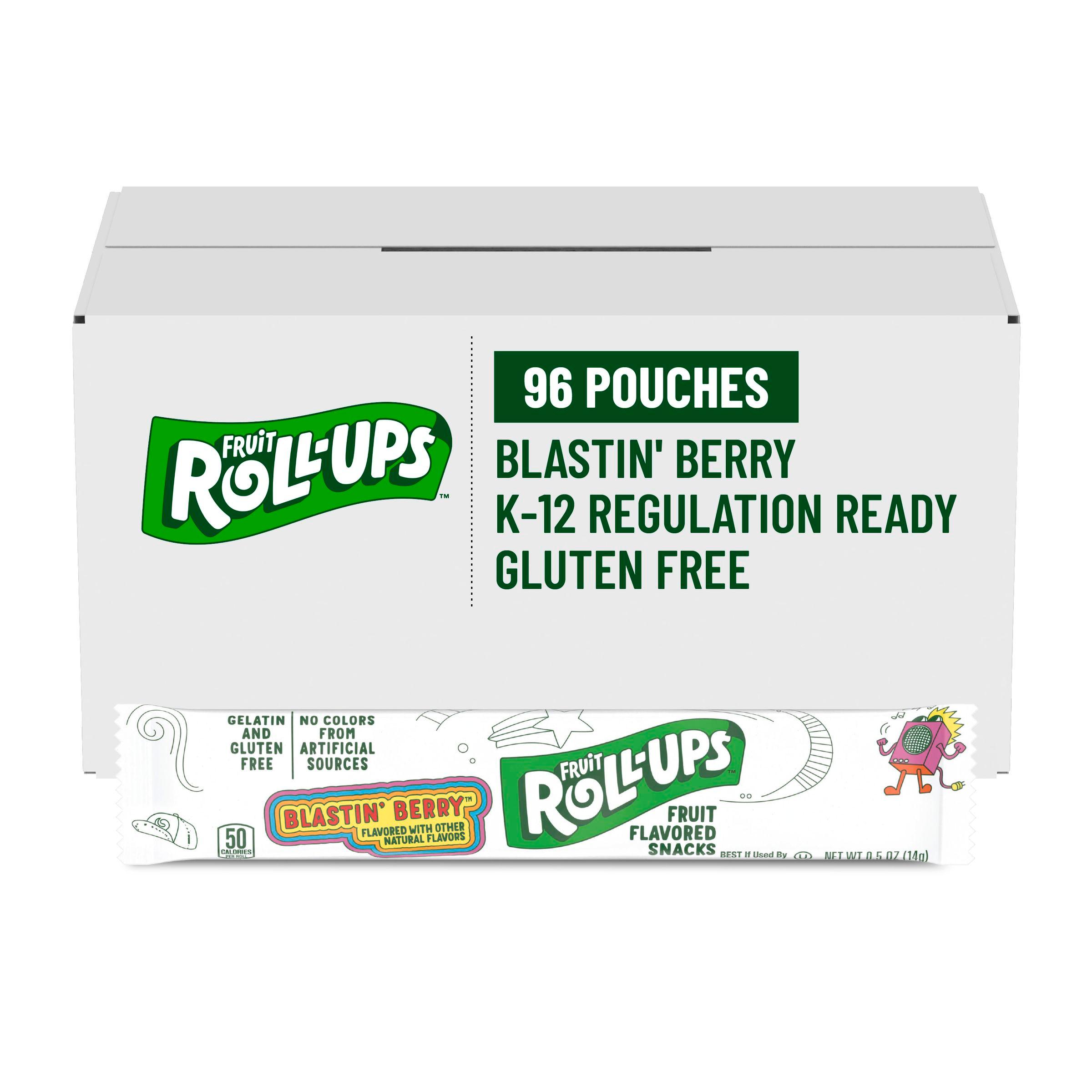 Fruit Roll-Ups Gluten Free Fruit Snacks Single Serve Pouch Reduced Sugar Blastin' Berry 96/0.5 OZ