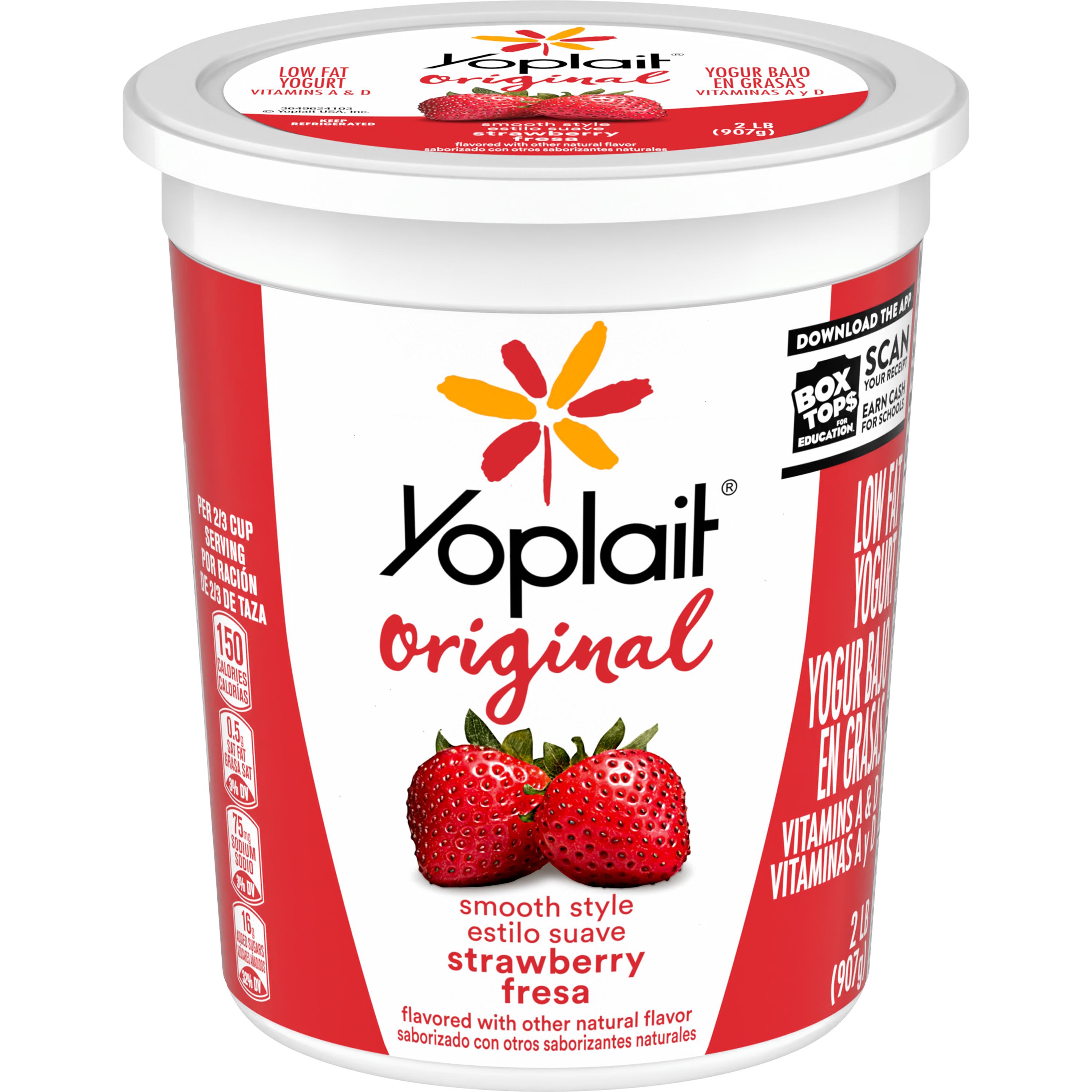 Bulk, low fat gluten-free yogurt with strawberry flavor in a 32 ounce tub. Yoplait Original yogurt is smooth, flavorful, delicious, and creamy for your low volume bulk yogurt applications. Made with no artificial flavors, no colors from artificial sources, and no high fructose corn syrup.
