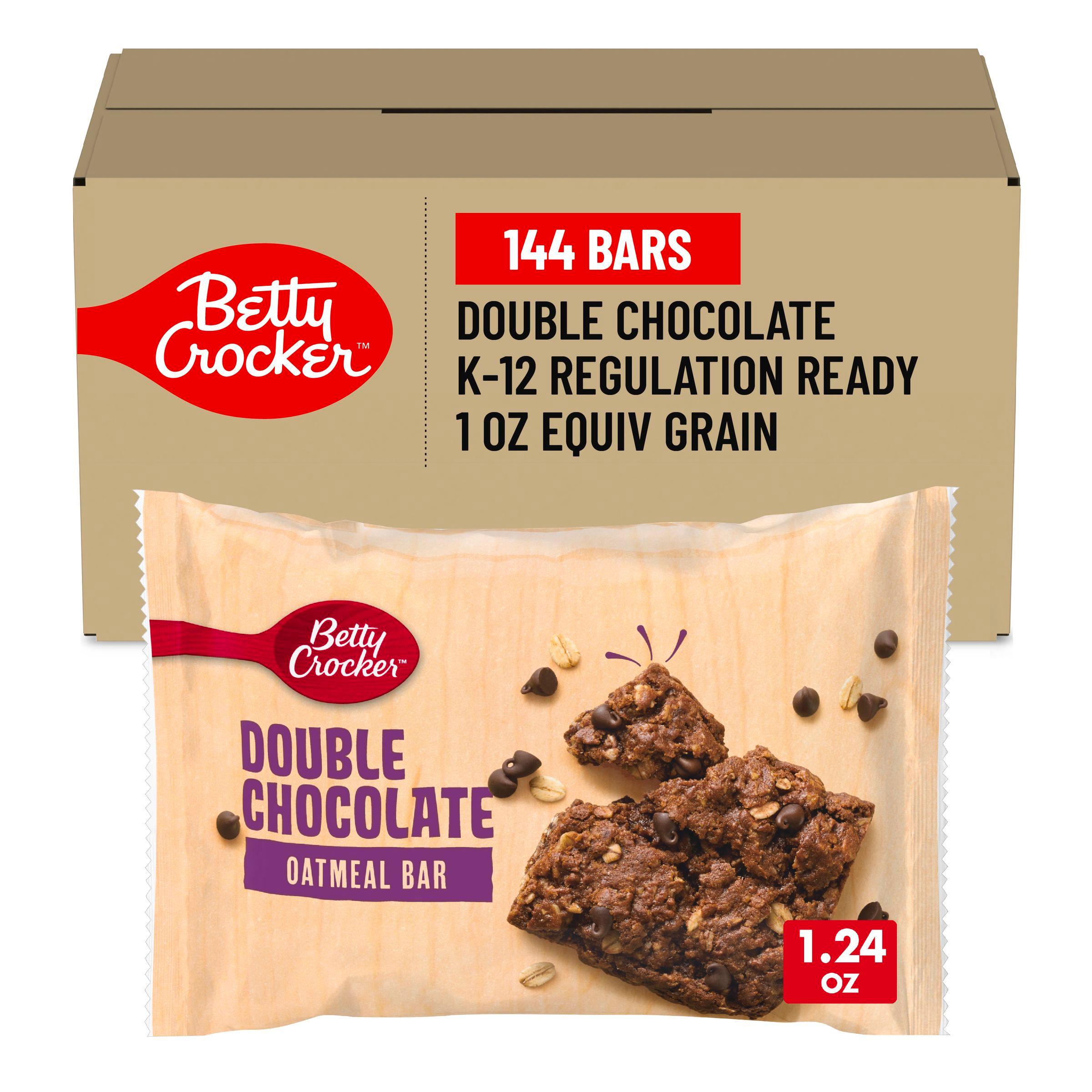 Betty Crocker Double Chocolate Oatmeal Bar offers a delicious, convenient snack option for K-12 schools. Each 1.24 oz whole grain-rich bar is individually wrapped for easy portion control. Ideal for breakfast in classrooms, cafeterias, or grab-and-go setups. Available in bulk cases of 144 bars, these bars meet USDA Smart Snacks criteria.