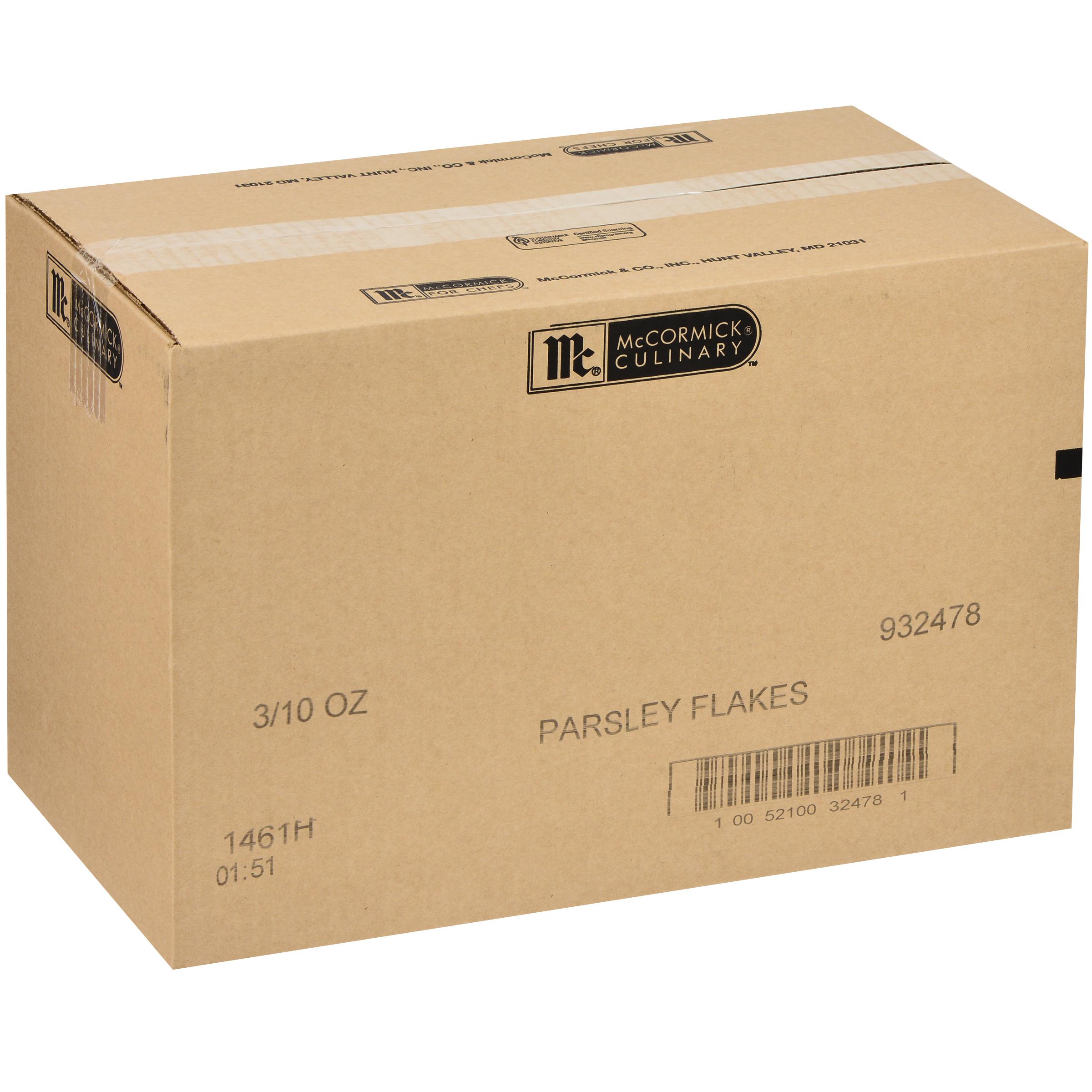 McCormick Culinary Parsley Flakes help brighten flavor and balance savory dishes: • McCormick Culinary Parsley Flakes deliver a clean, crisp, vegetable- like taste. • Sourced especially for chefs, McCormick Culinary Parsley Flakes are made from premium, quick-dried curly leaf parsley for a bright green color, mild flavor and outstanding visual appeal. • McCormick Culinary Parsley Flakes are kosher with no MSG added. • Our global sourcing enables unparalleled control and understanding of our supply chain, ensuring every product delivers a pure and consistent flavor. • There are 6/10 oz. containers in a case. Our 10 oz. size is recipe- ready and perfect for back of house for customizing recipes. • McCormick Culinary Parsley Flakes is a versatile herb that blends exceptionally well with other herbs and is perfect for flavoring chicken pitas, salads and broiled fish. • Our chefs rate McCormick Culinary Parsley Flakes a must-have, ideal pantry item for the flavor-obsessed