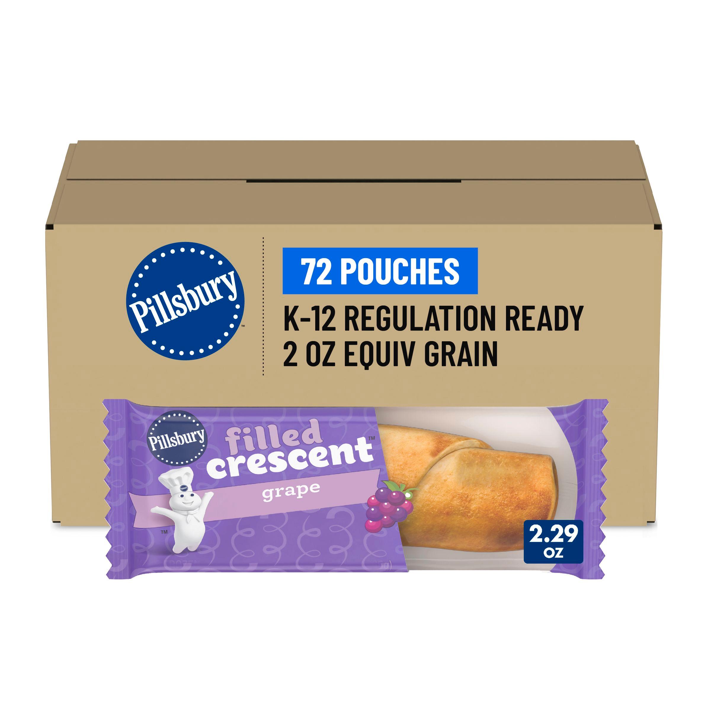 Pillsbury Frozen Meals Filled Crescent with natural grape flavor filling offers 16g of whole grain per serving. Conveniently packed with 72 ovenable pouches per case, ideal for heat & serve or thaw & serve. Meets 2 oz grain requirement, smart option for schools.
