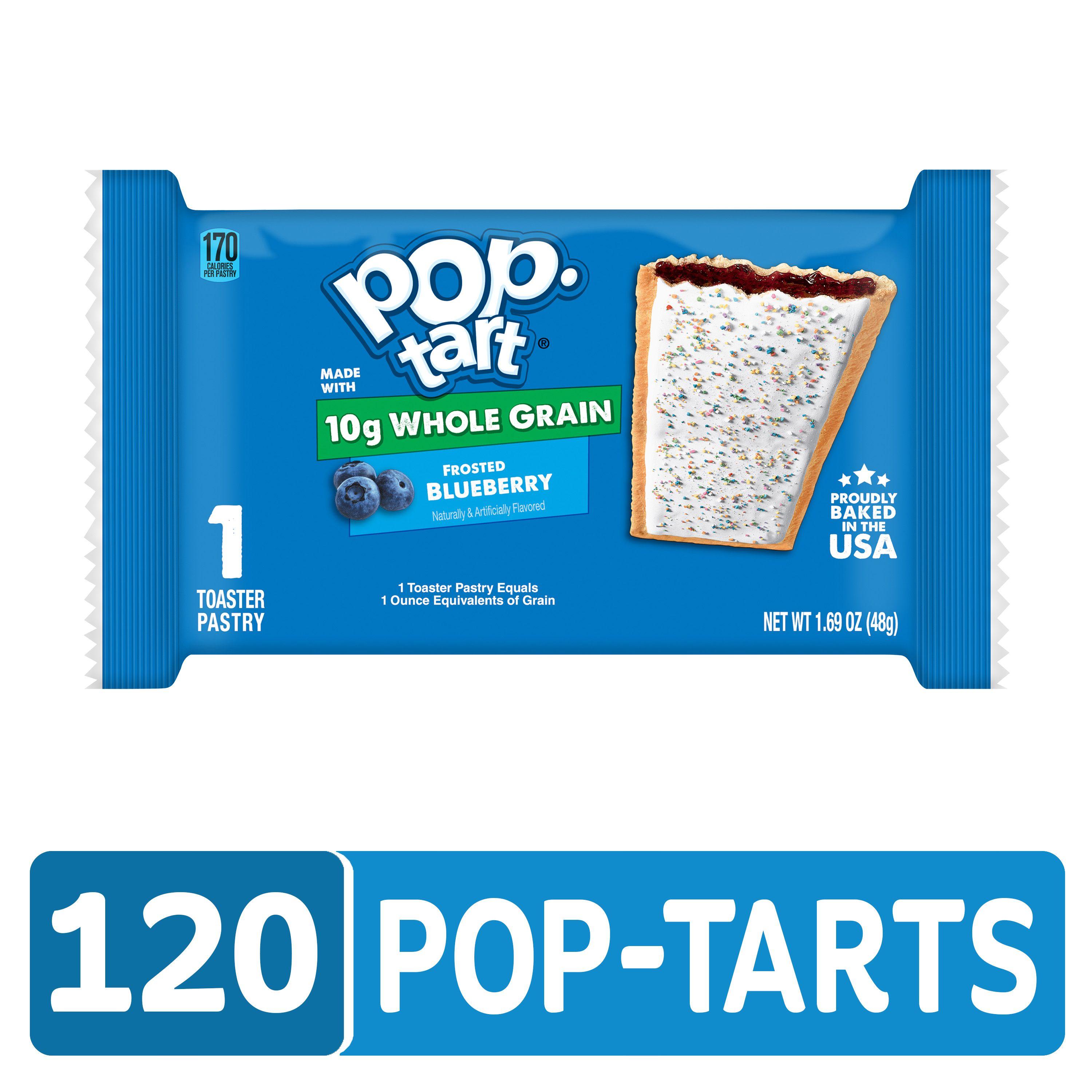 Pop-Tarts toaster pastries are the perfect sweet treat at breakfast, for a lunch snack option, or dessert. Featuring a sweet blueberry filling and crunchy sprinkles in a soft pastry crust, this ready to eat treat is perfect for snack time for kids and adults on the go. Pack Pop-Tarts Frosted Blueberry in lunchboxes or backpacks when it's time for school snacking, or stock the office pantry with this individually wrapped grab and go adult snack choice. Each serving contains 11g whole grain and includes no artificial flavors or colors, and no high fructose corn syrup.. Great choice for grab and go snacking featuring sweet filling in a soft pastry crust; Perfect sweet treat or lunch snack option.