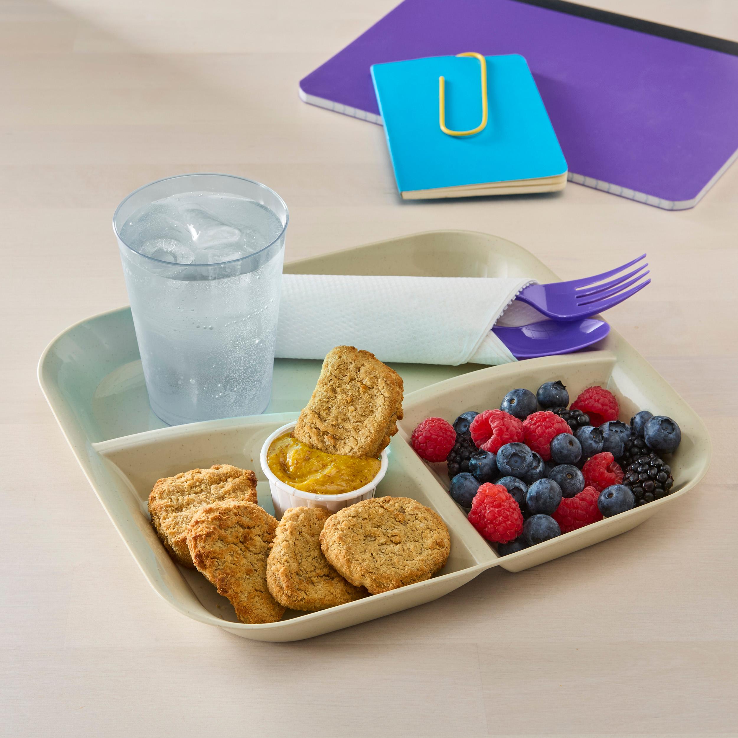 Tyson® Fully Cooked Whole Grain Breaded Golden Crispy Chicken Nuggets, CN, 0.60 oz. have delicious and crunchy, whole grain breading that kids love, without any artificial colors or flavors or preservatives. They heat up quickly, are easy to portion, and both kids and adults love them. Five 0.60 oz. fully cooked whole grain golden crispy chicken nuggets provide 2.00 oz. equivalent meat/meat alternate and 1.00 oz. equivalent grains for Child Nutrition Meal Pattern Requirements. These Golden Crispy chicken nuggets are a fully cooked, convenient, cost effective option for your menu. They’ll make your hungry students happy. Depend on the Tyson® brand for high quality poultry, so you can focus on helping your students achieve the most.