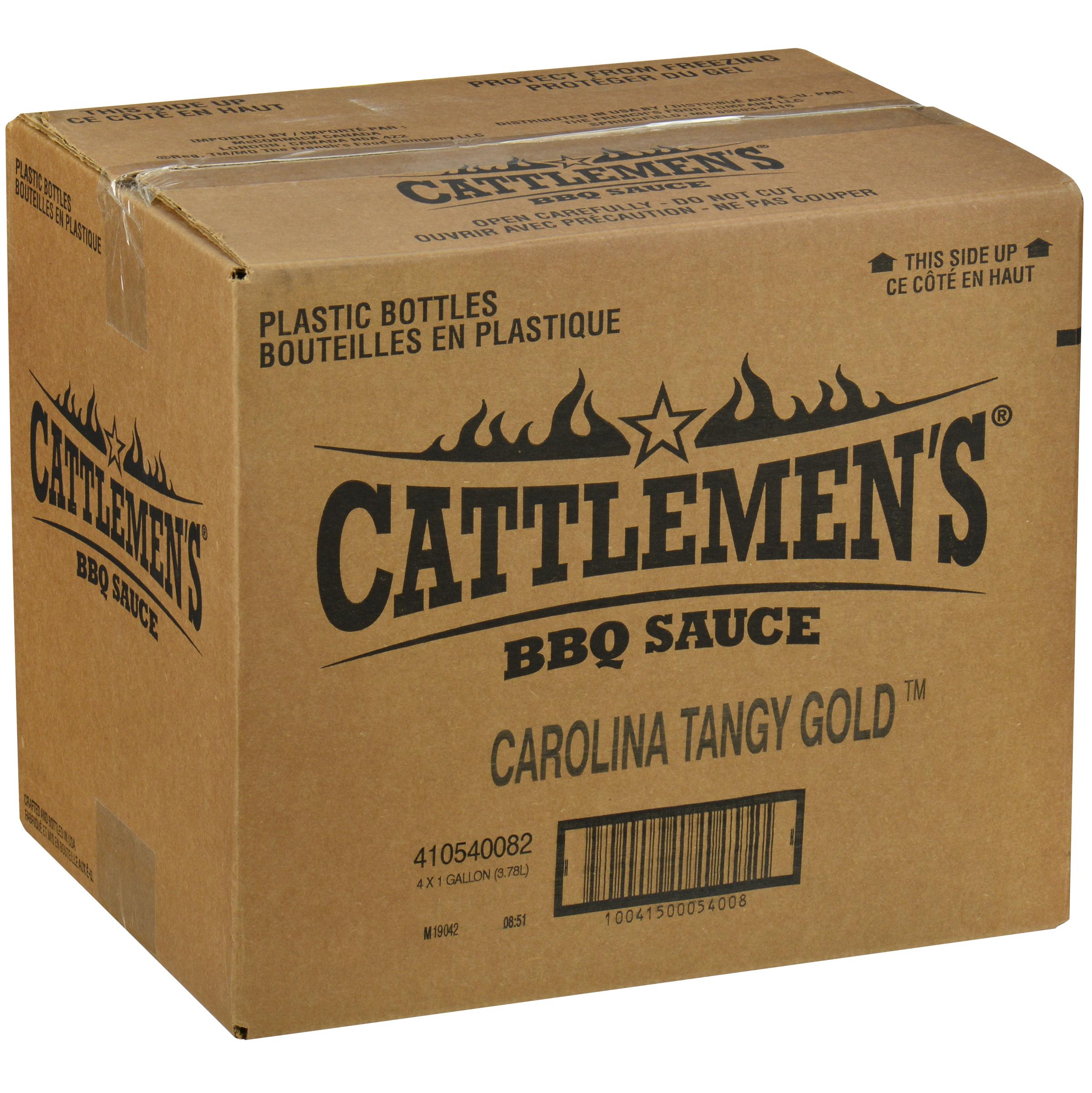 - Cattlemen’s Carolina Tangy Gold BBQ Sauce blends signature flavors like zesty, creamy mustard, sweet molasses and sugar and tangy apple cider vinegar with hickory smoke notes and a hint of perfectly aged cayenne peppers for a complex, unmatched flavor profile and a rich, distinctive golden color. • Our 1-gallon jug is extendible by up to 20% for added profits. • Built exclusively for foodservice, Cattlemen’s provides thick tomato paste for better coverage and cling and no starches and fillers to prevent burning. • Cattlemen’s Carolina Tangy Gold BBQ Sauce is made without high fructose corn syrup, starches, fillers or caramel color so you can feel good about crafting recipes for your menu. • Cattlemen’s Carolina Tangy Gold BBQ Sauce is kosher, vegetarian, dairy-free and contains no eggs, fish, peanuts or tree nuts. • With its superior performance, Cattlemen’s Carolina Tangy Gold BBQ Sauce works well as a colorful glaze for salmon, wings, shrimp and chicken.