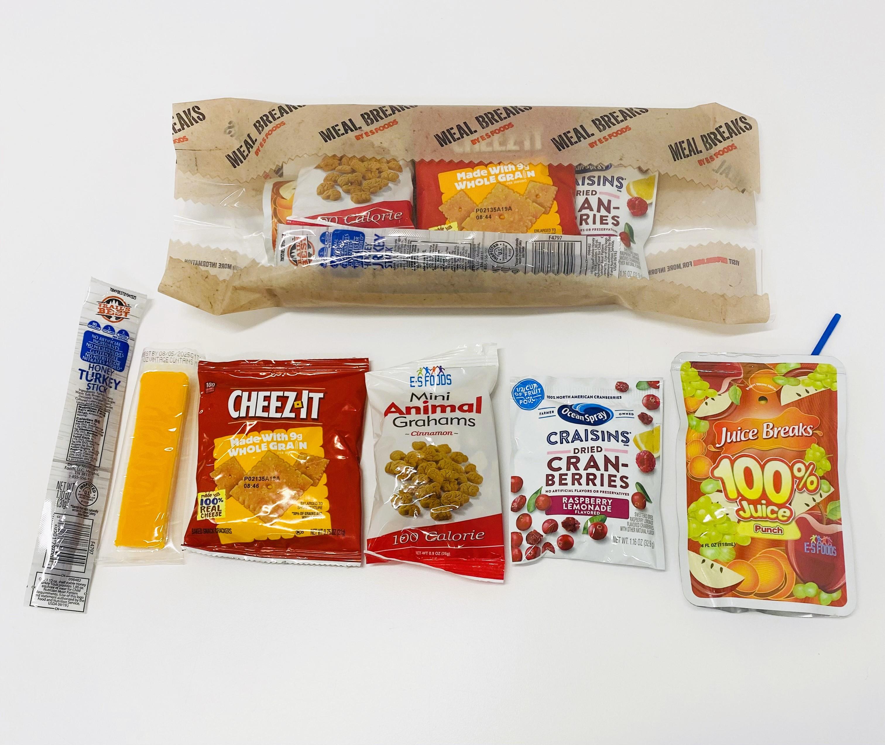 Each serving (1 meal) of Meal Breaks provides 2.0 oz equivalent meat alternate, 2.0 oz equivalent grains, ½ cup additional vegetable and ½ cup fruit based on the USDA Food Buying Guide requirements.