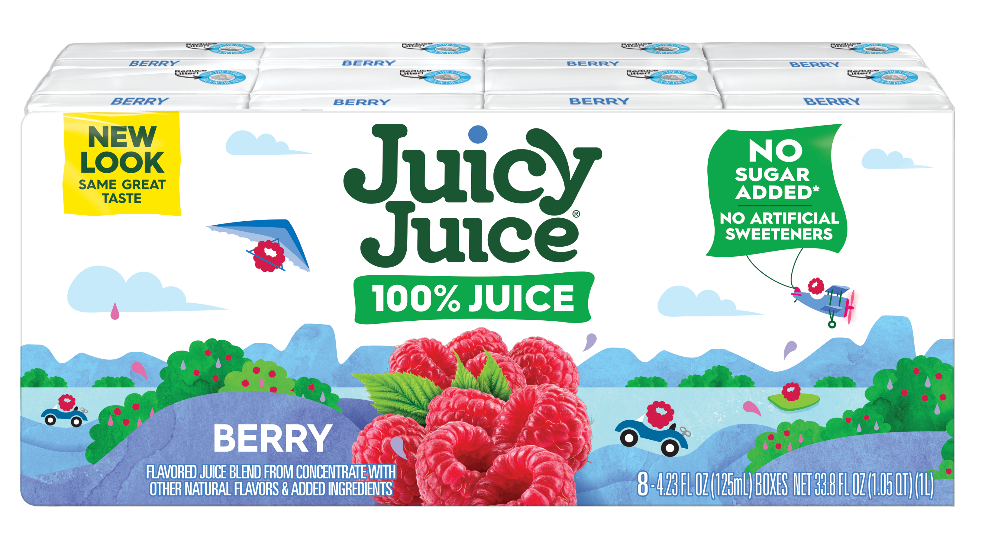 Enjoy the taste of 100% fruit juice with Juicy Juice Berry Juice. The sweetness in this berry juice comes straight from fruit for a delicious berry flavor kids love. With no added sugar, no high fructose corn syrup and no artificial sweeteners, this 100% juice has 1/2 cup of fruit and 60% of the daily value of Vitamin C per kids juice box for a tasty juice drink.