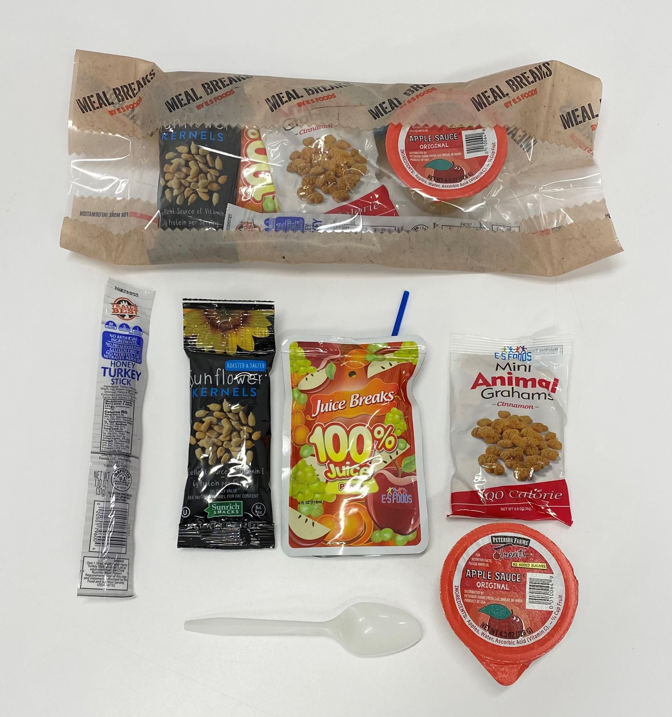 Each Serving (1 meal) of Prepackaged Meals provides 2 oz equivalent meat/meat alternate, 1 oz bread alternate serving, 1/2 cup fruit & 1/2 cup vegetable based on the USDA Food Buying Guide Requirements