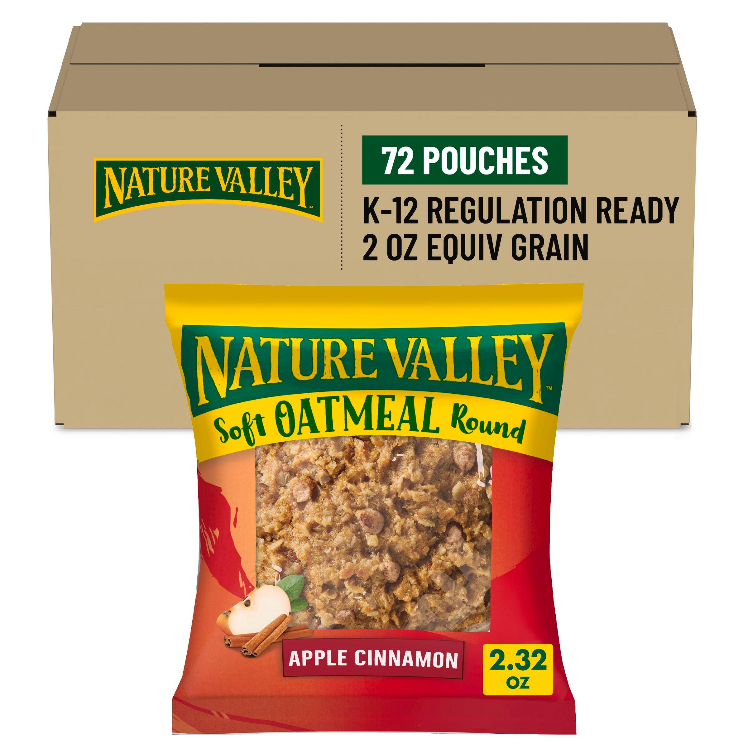Nature Valley Frozen Soft Oatmeal Round Apple Cinnamon features soft-baked bar with oats, cinnamon chips, and apple puree. Individually wrapped for heat & serve or thaw & serve, perfect for cafeteria or classroom. Each 2 oz. package meets the whole grain-rich criteria with 32g whole grains (at least 48g recommended daily). Comes in a case of 72.
