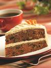Carrot layer cake made with carrots, walnuts, pineapples and spices, topped with cream cheese icing.