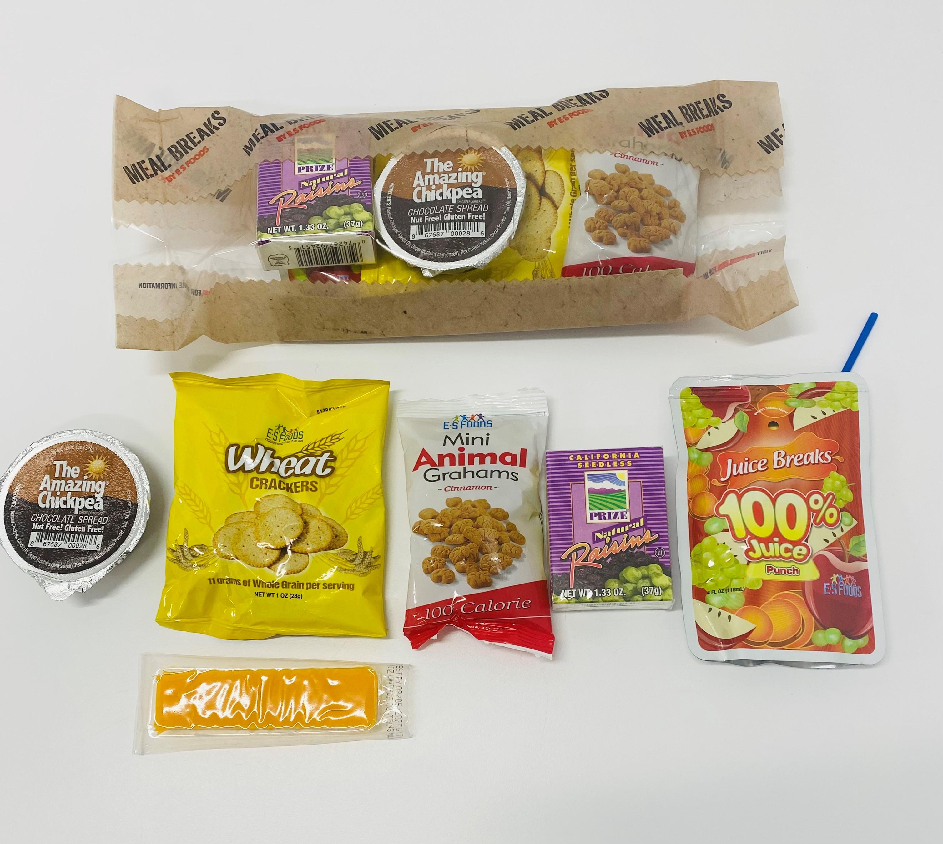 Each serving (1 meal) of Meal Breaks provides 2.00 oz equivalent meat alternate, 2.25 oz equivalent grains, ½ cup additional vegetable and ½ cup fruit based on the USDA Food Buying Guide requirements
