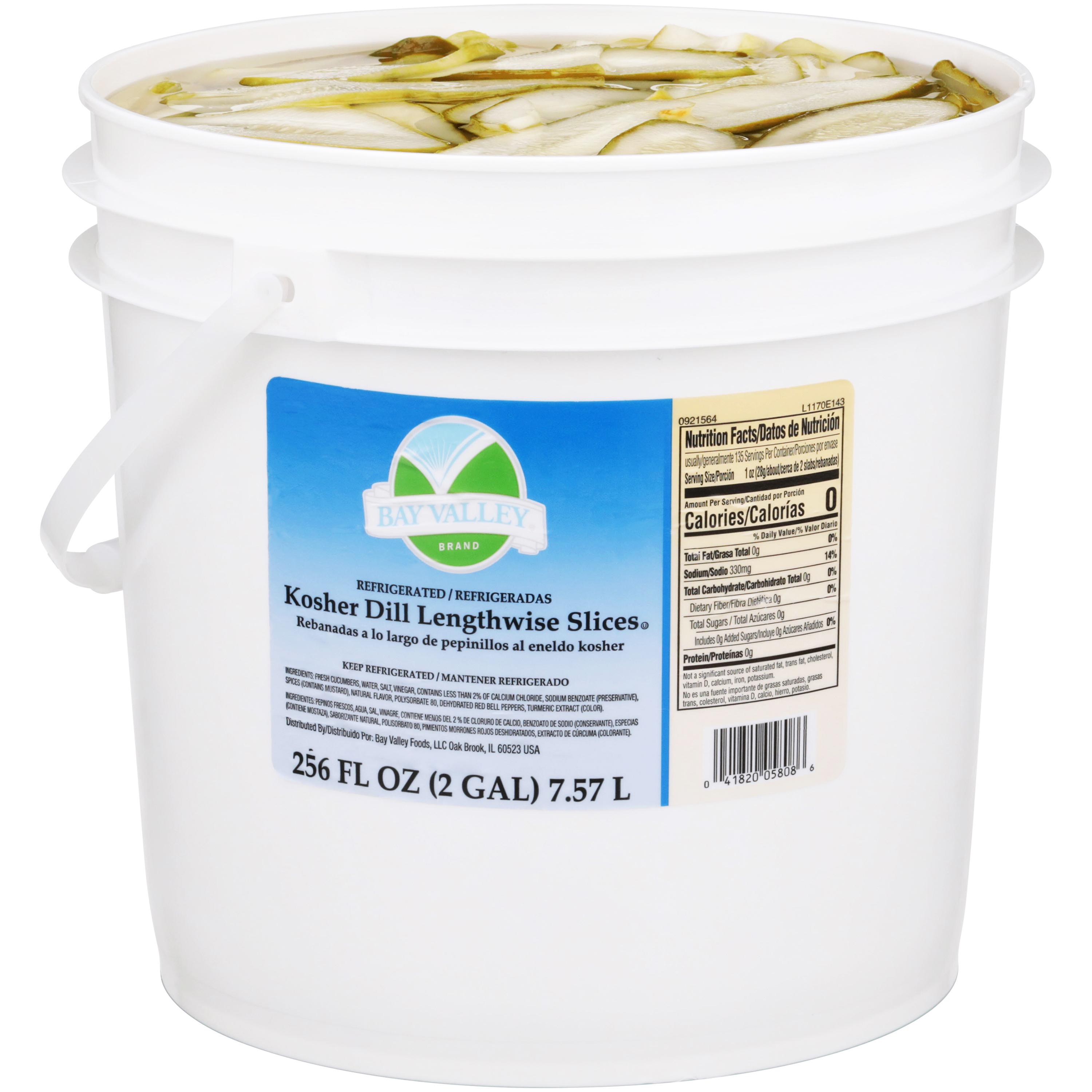BAY VALLEY 2 GAL REFRIGERATED KOSHER LENGTHWICE PICKLE SLICES 5/32 SMOOTH 250-290 COUNT-CASE OF 1