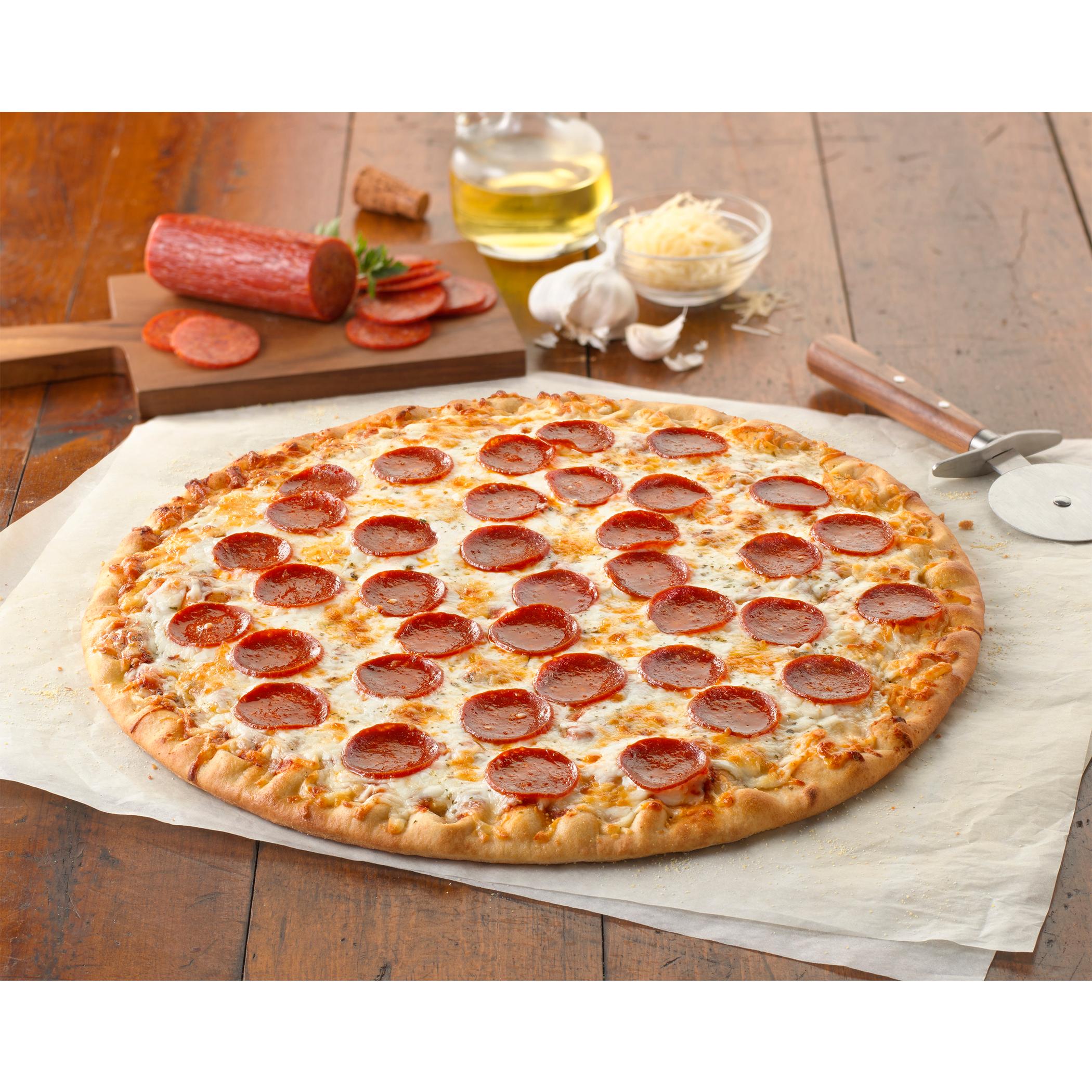 BIG DADDY'S® Primo Par-Baked Uncured Turkey Pepperoni Pizza is made with premium quality ingredients including our signature sauce made with vine-ripened tomatoes and topped with a cheese blend of mozzarella, Parmesan, provolone, and white cheddar. The Parmesan, breadcrumb and herb coating on top of the pizza adds great flavor.
