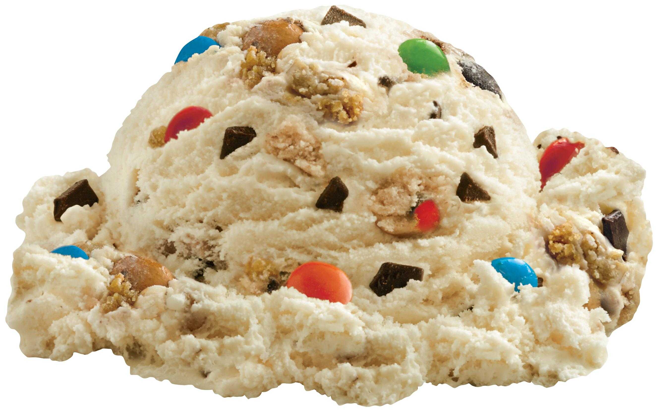 Vanilla flavored ice cream with a monster cookie blend and a peanut butter variegate.