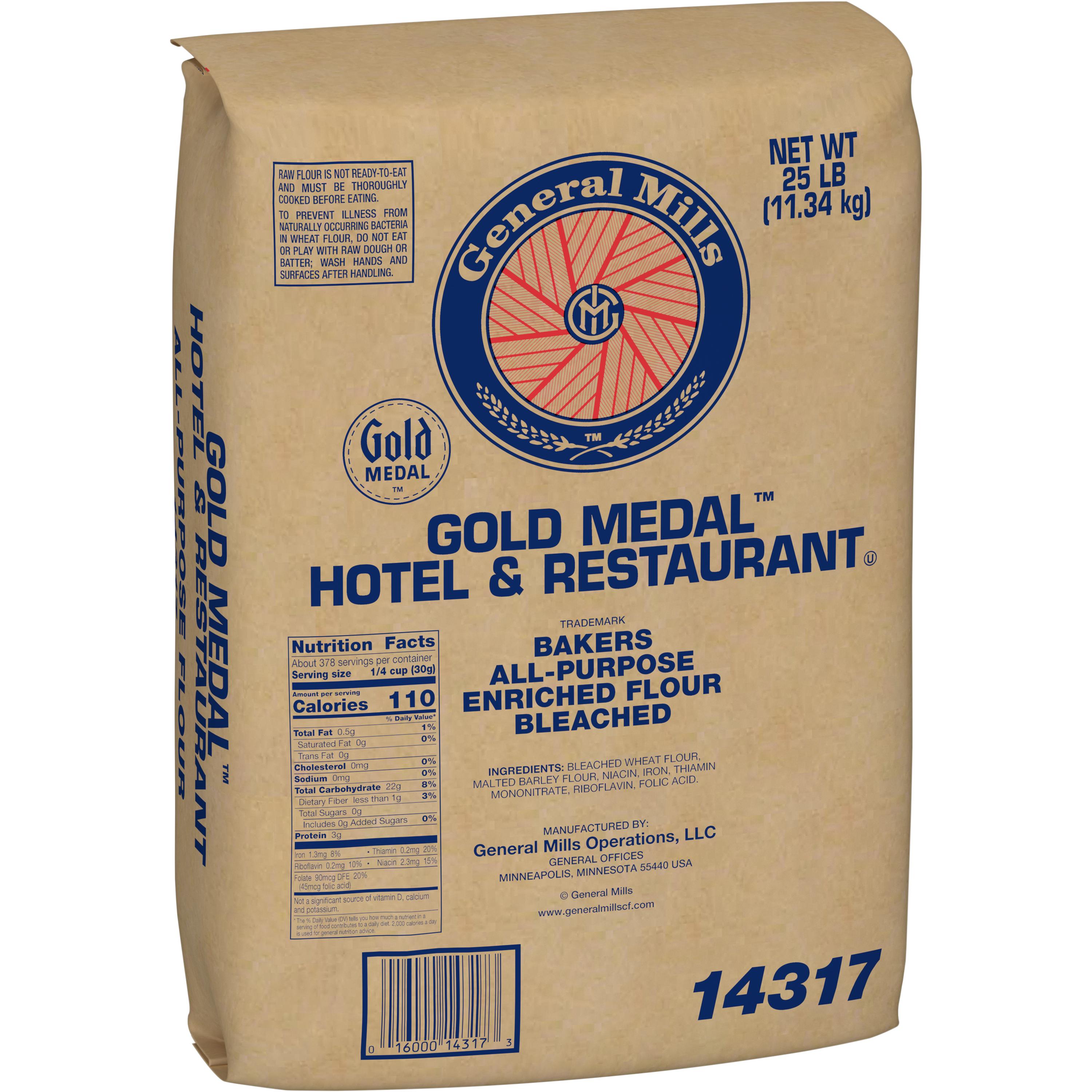 Gold Medal™ Hotel & Restaurant™ All-Purpose Flour is a hard and soft wheat flour. Available in a bundle of 2 bags, with a 10.5% protein level.